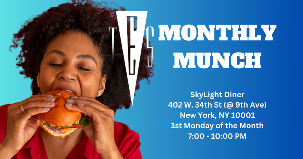 IN-PERSON – TES Monthly Munch We’d love to have you at the TES Monthly Munch! Whether you’re new to the scene, an old friend, or just curious, our monthly munch is a great opportunity to meet fellow kinksters in a low-key, low-pressure setting. There’s no need to RSVP, and everyone is welcome—you don’t even have to be a TES member to join us! We gather on the first Monday of every month (if it’s a holiday, we’ll meet on the following Monday) at an alternative lifestyle-friendly diner in NYC. Our hosts will be there to give you a warm welcome and answer any questions. Attending is free; you just pay for your food and please remember to tip your server well! We also ask that you wear “vanilla” (non-BDSM) clothes. A Note on Safety This event is held at a public diner, and while we highly encourage all attendees to be vaccinated against COVID-19, we cannot control what the restaurant requires of other patrons. Please assess your own risk and act accordingly. We will have a discreet contact tracing option available, which we encourage you to use. For more information, including a code of conduct for newcomers, please visit our FAQ page. We can’t wait to see you there!… Continue Reading